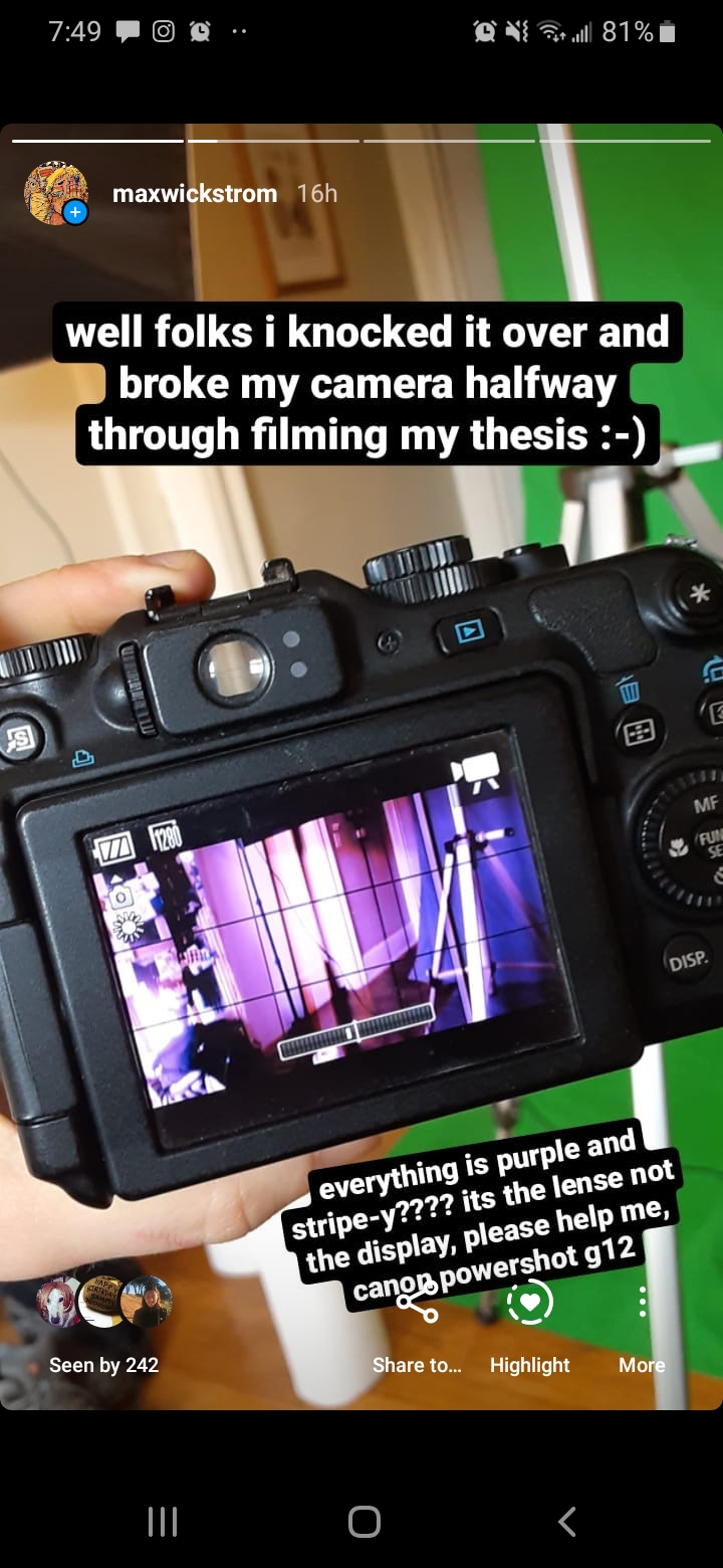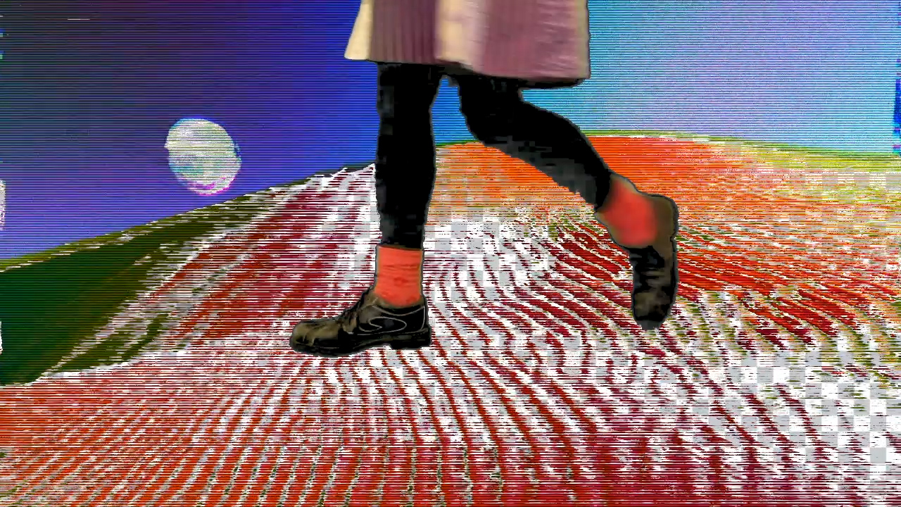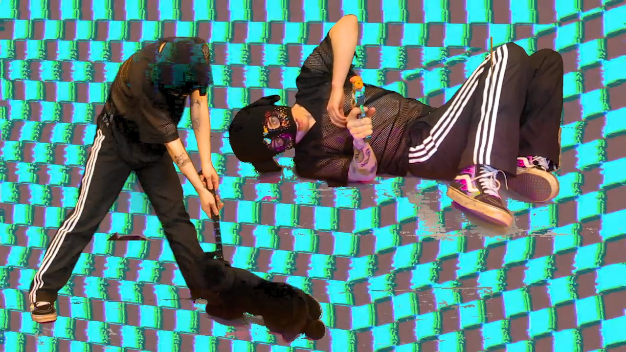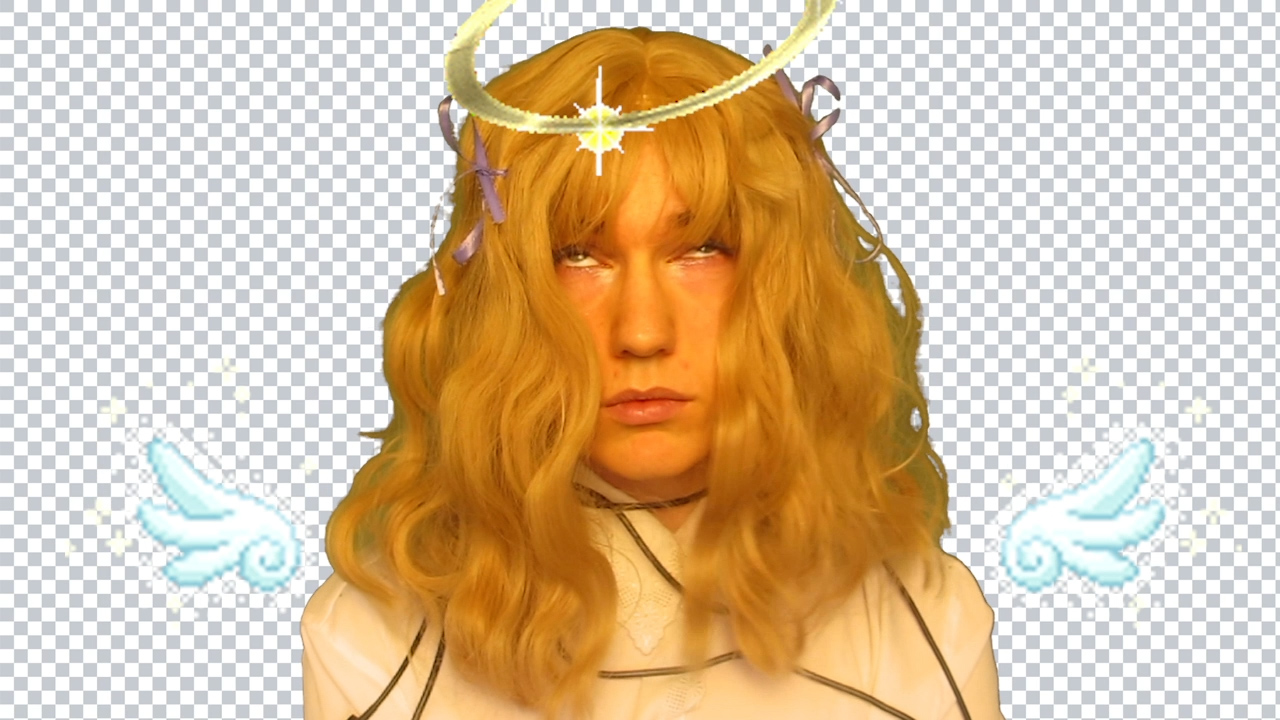 The title track is about a lonely girl, who I've named "Lucky", using the internet as a form of escapism. This was the last song I finished writing and it inspired the concept and appearance of the whole film. "The Arsonist" is the album's unreliable narrator. He tries to disguise his unease with grandiosity, attempting to turn the confusing experience of living into neatly-packaged (and most likely imaginary) stories. I think of the narration as a distancing from or perhaps disowning of a helpless past self, describing and acting out an emotional experience without actually feeling anything. The third character, "The Creature", moves as if it's possessed, contorting unnaturally and tensing in physical pain. All of the characters make me think of uncanny video game avatars. In the final track's end sequence, there are flashes of the characters crouched in unnatural positions laid over the video. This was inspired by the way the games in The Sims series glitch up and your Sims start twisting grotesquely when you download user-made custom content from sketchy blogs. With my characters, I portray aspects of myself that make me uncomfortable and leave the viewer to trust my intentions and level of self-awareness. The performances are deliberately weird and awkward, but not intentionally bad. Rather, I allowed them to fall short when I was unable to achieve the effect I wanted. This was my approach towards the whole project and my art in general.